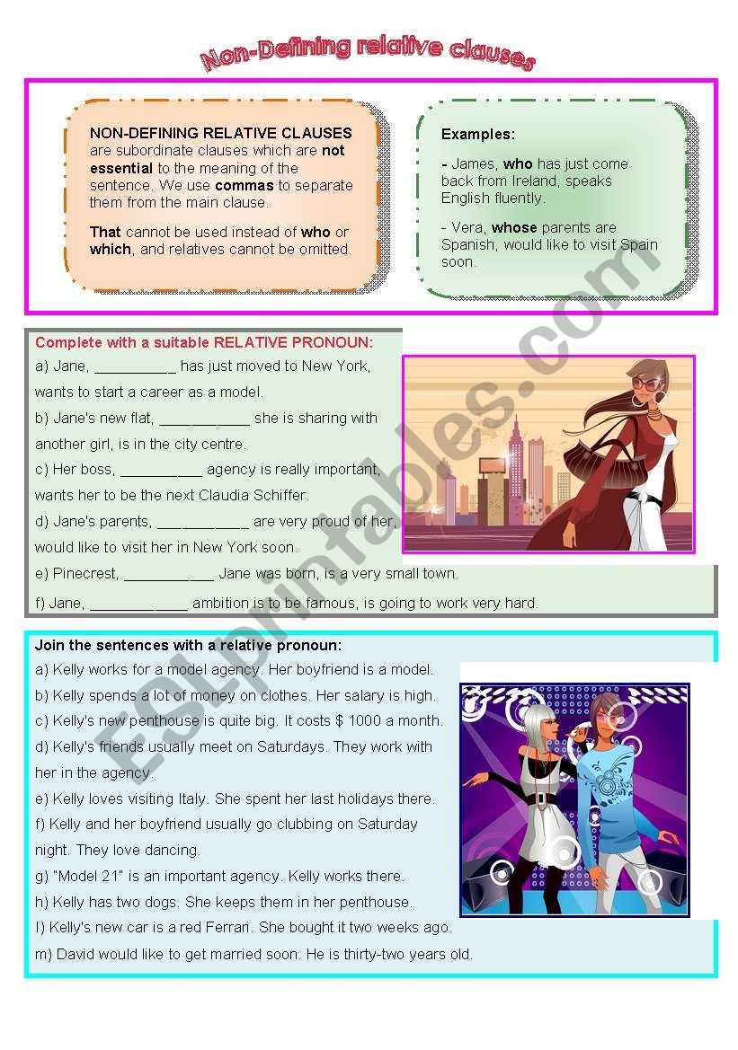 Grammar worksheets > Clauses > Defining relative clauses > Non-Defining Relative Clauses