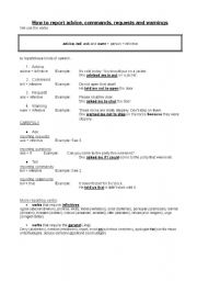 reported speech FCE - special structures (advice, commands, requests, warnings, other reporting verbs)