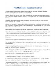 An article about the Melbourne Marathon Festival 2025 with an accompanying worksheet.