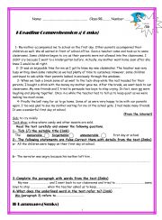 The Reading Comprehension is about �cheating� and the Writing is about �pocket money�.