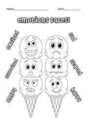 Nice and funny colouring worksheet for kindergarden students. Feelings and emotions for colouring in a funny way (ice creams showing the faces!).