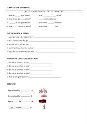 DIFFERENT ACTIVITIES FOR STUDENTS TO WORK WITH THE QUESTIONS how do you go to school?