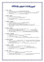 You can find some exercises to practise the difference between pairs of words often confused. The pairs included are, for example, lie-lay, rise-raise,rob-steal, realise-release,actual-current, and so on. The key is included.