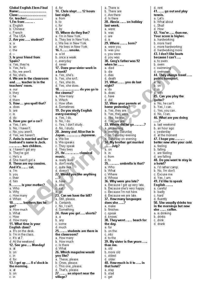 Teaching resources > Tests and exams > Quizzes > elementary quiz - general