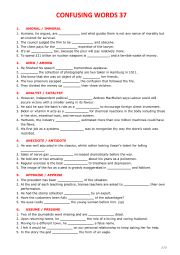 Worksheets number 37 to practise on confusing words. With anagrams, homophones, word families, phrasal verbs, adjectives, etc. Answer key inc6ded.