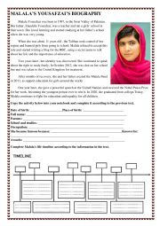 Activity with interpretation and timeline about Malala Yousafzai