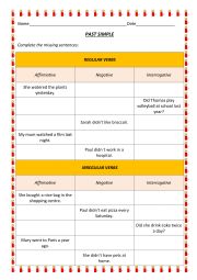 Practice the affirmative, negative and interrogative of irregular and regular verbs in the past simple.