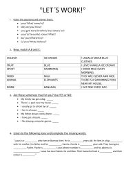 I am making videos to teach English with music. With each video, you will find a worksheet. Here is a list of my topics so far: animals, days of the week, months, body parts, family members, feelings, numbers, big numbers, colours, the verb BE, regular verbs and irregular verbs.