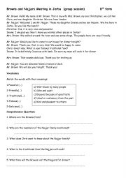 worksheet for tunisian 8th formers module 1 lesson 1 meet the Browns reading comprehension+ writing using given questions+ enacting a roleplay