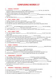 Worksheets number 17 to practise on confusing words. With anagrams, homophones, word families, phrasal verbs, adjectives, etc. Answer key included.