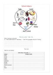 This is a worksheet to practice writing about students� opinion about school subjects + a pair work to interview their partner on this theme