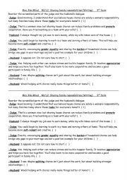 pairwork activity designed for Tunisian 9th graders as a production part of module1 lesson 2 "sharing family responsibilities" L earner are required to work in pairs to reorder scrambled parts of a conversation between a judge and a husband