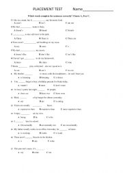 PLACEMENT TEST MULTIPLE CHOICE TEST