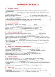 Worksheets number 16 to practise on confusing words. With anagrams, homophones, word families, phrasal verbs, adjectives, etc. Answer key included.