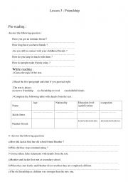 lesson Friendship the pre the while and the post reading stages. i hope it is useful