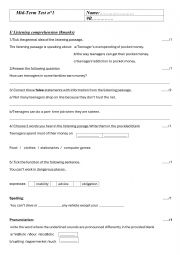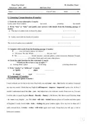mid term test containing listening comprehension and language