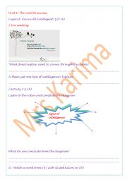 a worksheet related to lesson 7 are we all intelligent ? First form