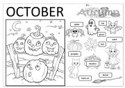 A notebook divider to star october month, with vocabulary related to the themes: autumn and halloween