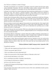 The minister in charge of Education has recently written a paper prohibiting students � use of cellulars at school