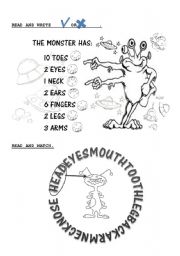 English Worksheet: Monsters, monsters!!! -Body Parts-