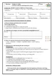 English Worksheet: Lesson 5: Tolerance and Respect for others