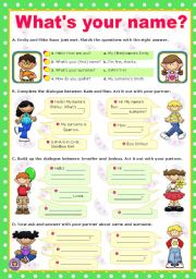 English Worksheet: Writing Time Series - My name is... (To Be) - Children