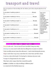student revise adjectives useful for speaking about transport and travel . they focus on key words related to travel which are often confused and then they do a 25 sebntence gap fill using the words . tyhere is a complete answer sheet which also explain why each has been used . useful for gese 5 and 6 and ise 1