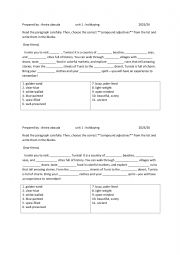 a gap filling exercise to consolidate the correct use of adjectives and compound adjectives ! Assigned as a homework. key is included