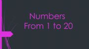 Numbers from one to twenty. First we show from one to ten. Each slide one number. Then from one to ten in one slide. After it we show from eleven to twenty and a whole slide from eleven to twenty. At last we make a guess game when numbers appears without their names.