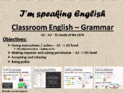 a powerpoint full of animations to help your pupils use "classroom English". they will learn to use the imperative (giving orders / instructions), to ask questions (with can, could etc... depending on their level), to accept or refuse what they are asked, to be polite. can be fully edited.