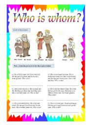 It�s a very nice activity to review the topic: Describing people, talking about appearance, colors, parts of the body and some adjectives. I usually work it for revising.