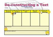 This is based on a first steps model used t o break down a reading text. I have designed this for a newspaper article. It is very efective, especially when used with an article that is relevent ot the students.