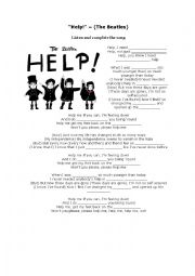 worksheet with activities using the lyrics of the song HELP from The Beatles.