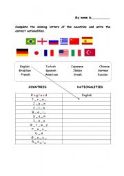 This worksheet contains a matching activity which includes countries flags and nationalities. I hope my dear colleagues will find it useful.