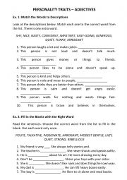 Personality Traits - Adjectives ESL Worksheet