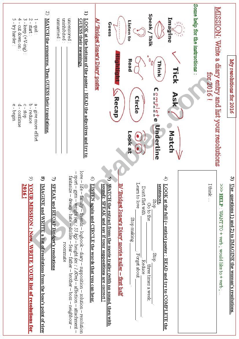 aim : 1/make Ss discover or review future tense (suppositions on Bridget´s resolutions then checking);