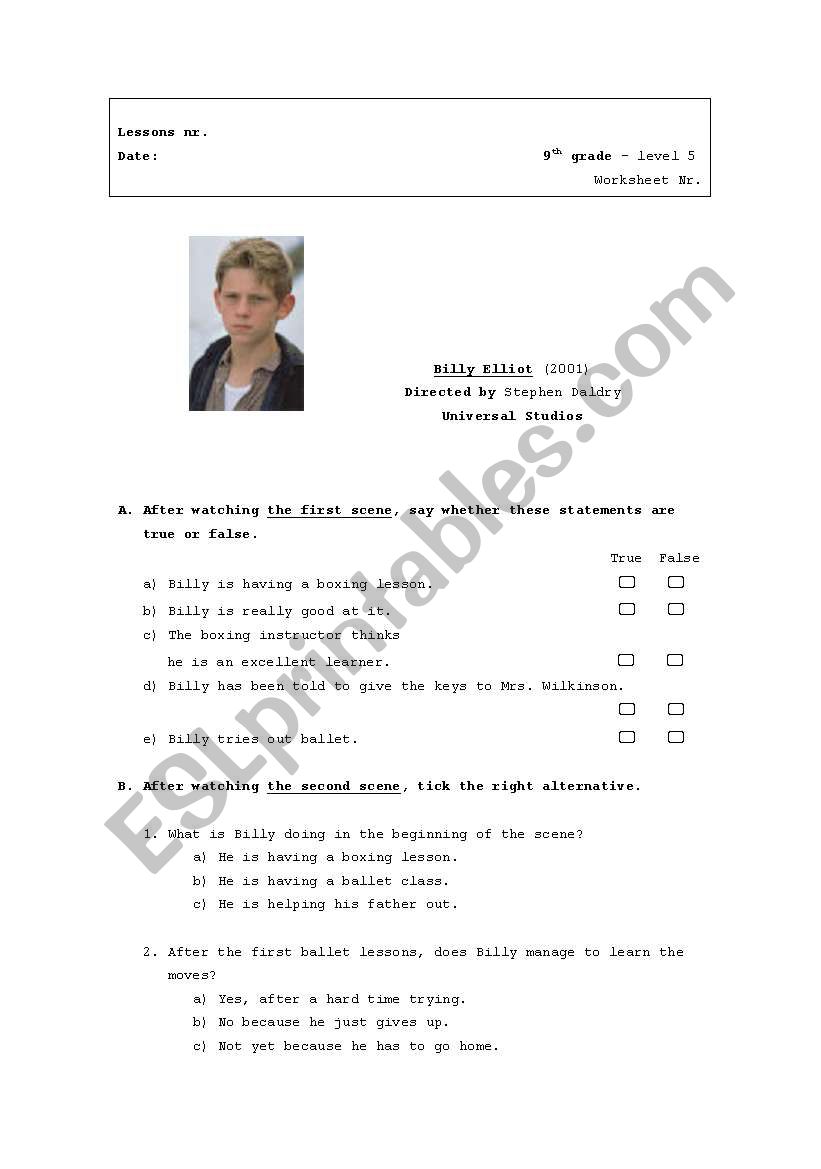 Billy Elliot worksheet