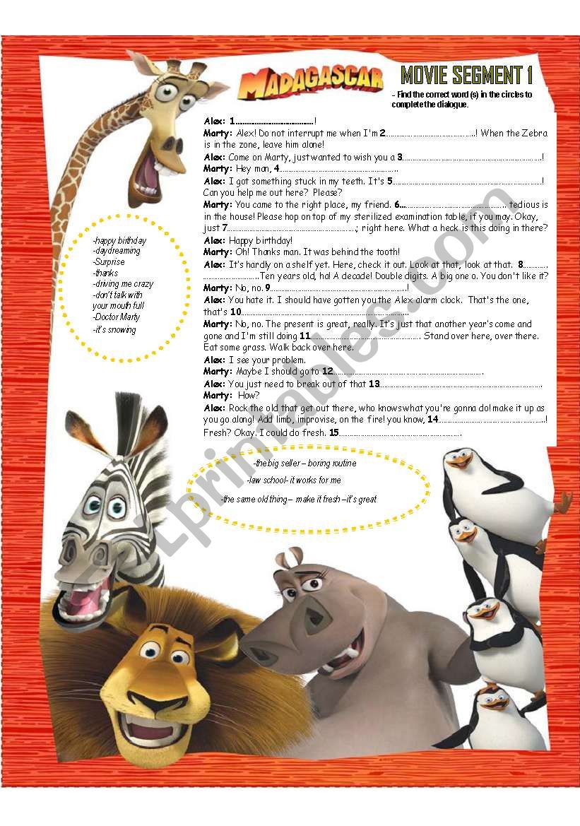 MADAGASCAR MOVIE SEGMENT1- SCRIPT ACTIVITY worksheet