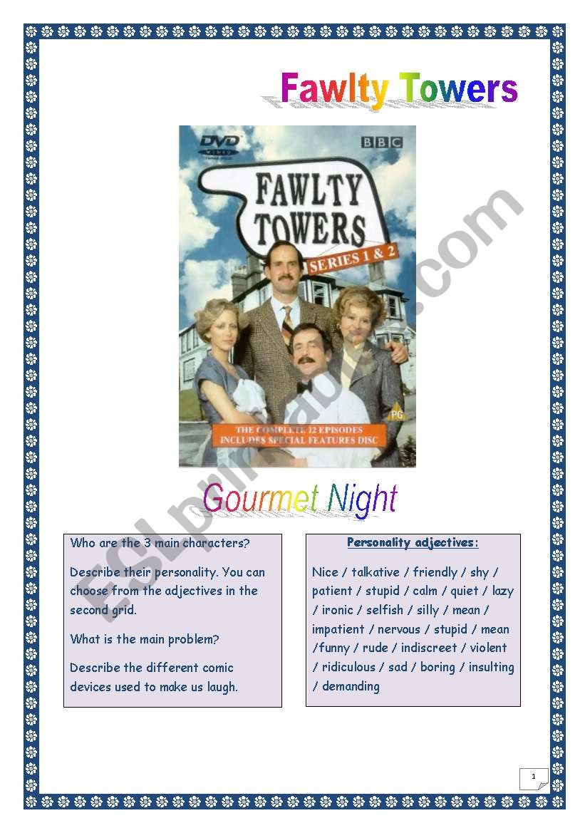 Fawlty Towers -Gourmet Night -BRITISH HUMOUR - KEY included. worksheet