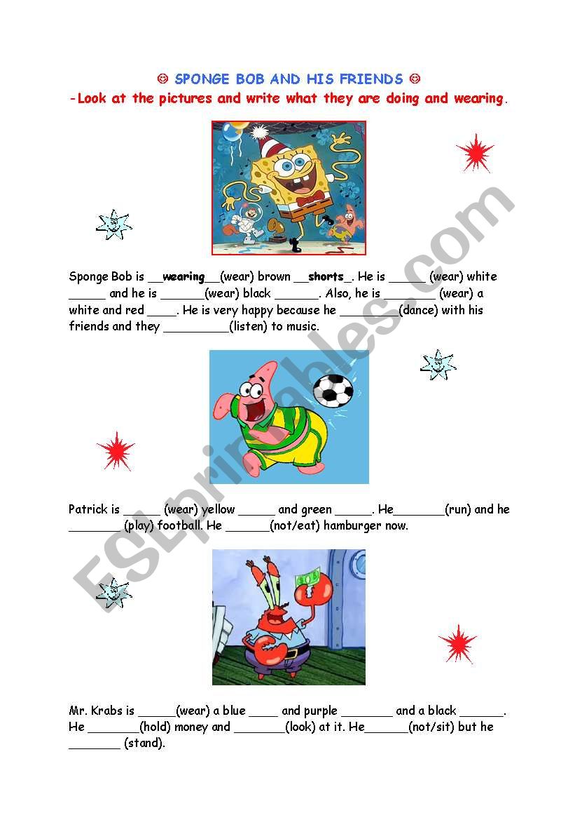 Very colourful worksheet which is appropriate with the interest areas of young students. You can practise both vocabulary(clothes) and grammar (present cont.).Enjoy it!