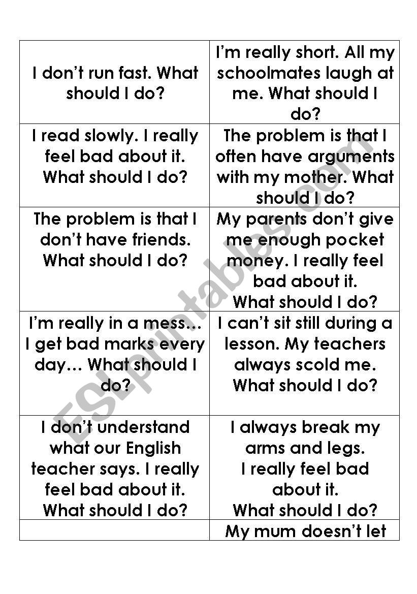 It´s the game I prepared for my children. They had to find the advice to each problem. They liked it)))