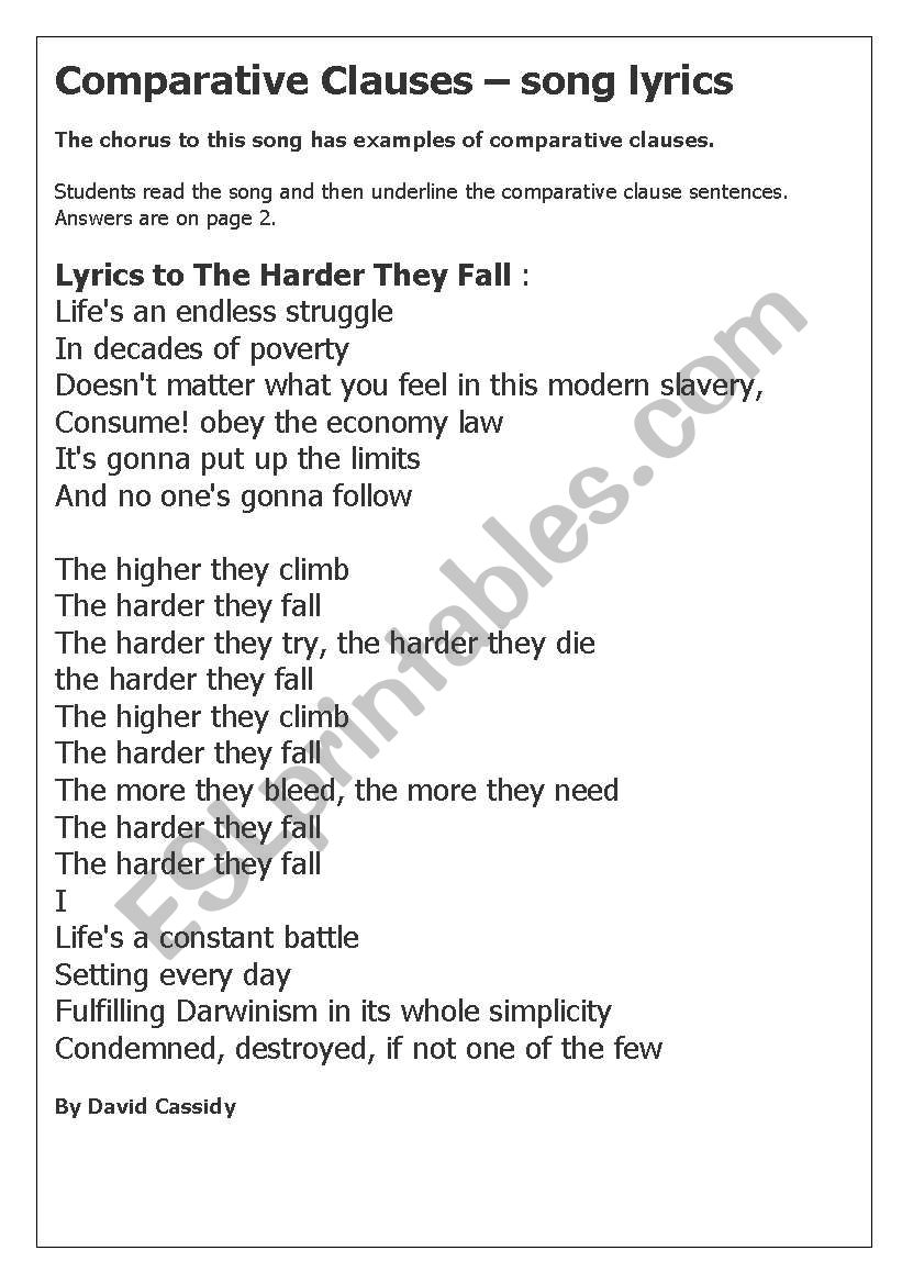 Grammar worksheets > Adjectives > Comparative adjectives > Comparative Clauses - lyrics