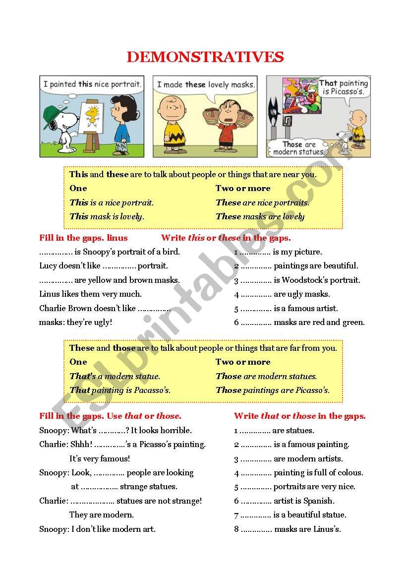 Grammar - Demonstratives: THIS / THESE / THAT / THOSE worksheet