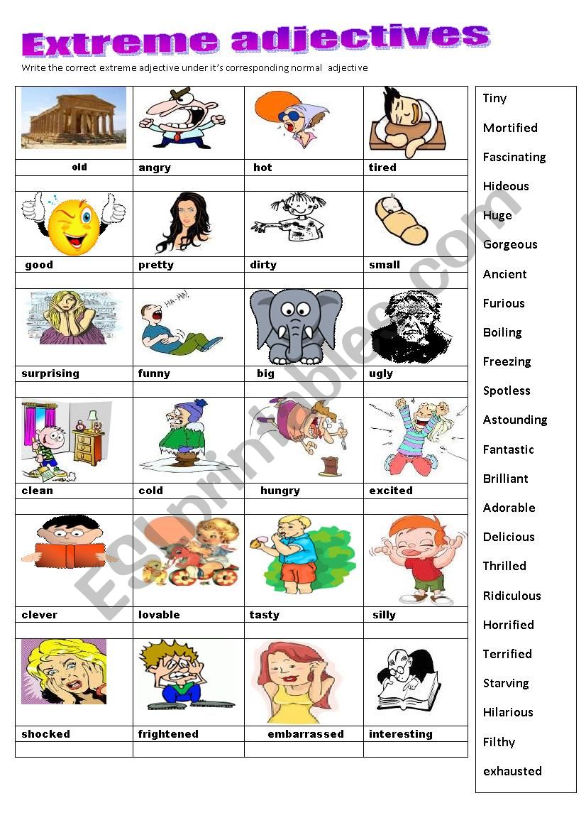 Grammar worksheets > Adjectives > Extreme adjectives > extreme adjectives