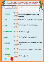 Order of adjectives worksheets
