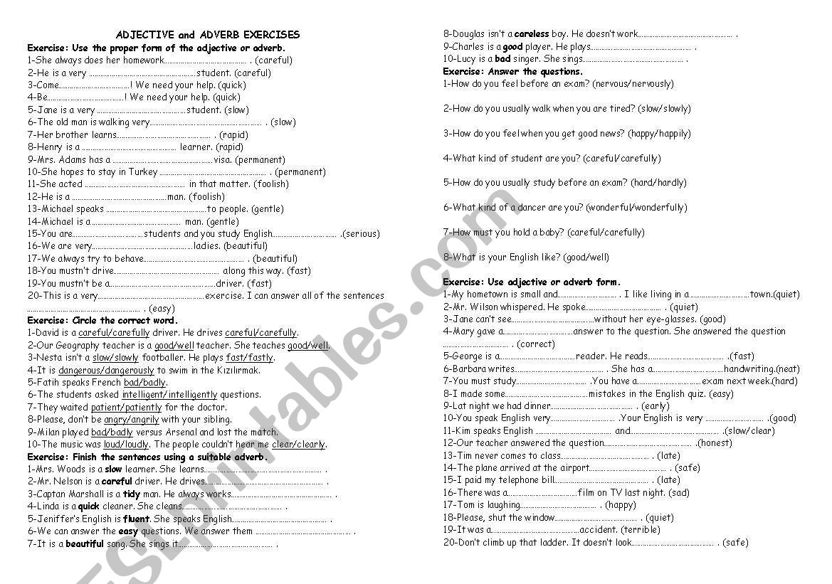 Grammar worksheets > Adverbs > Adjectives and adverbs > ADJECTIVES and ADVERBS