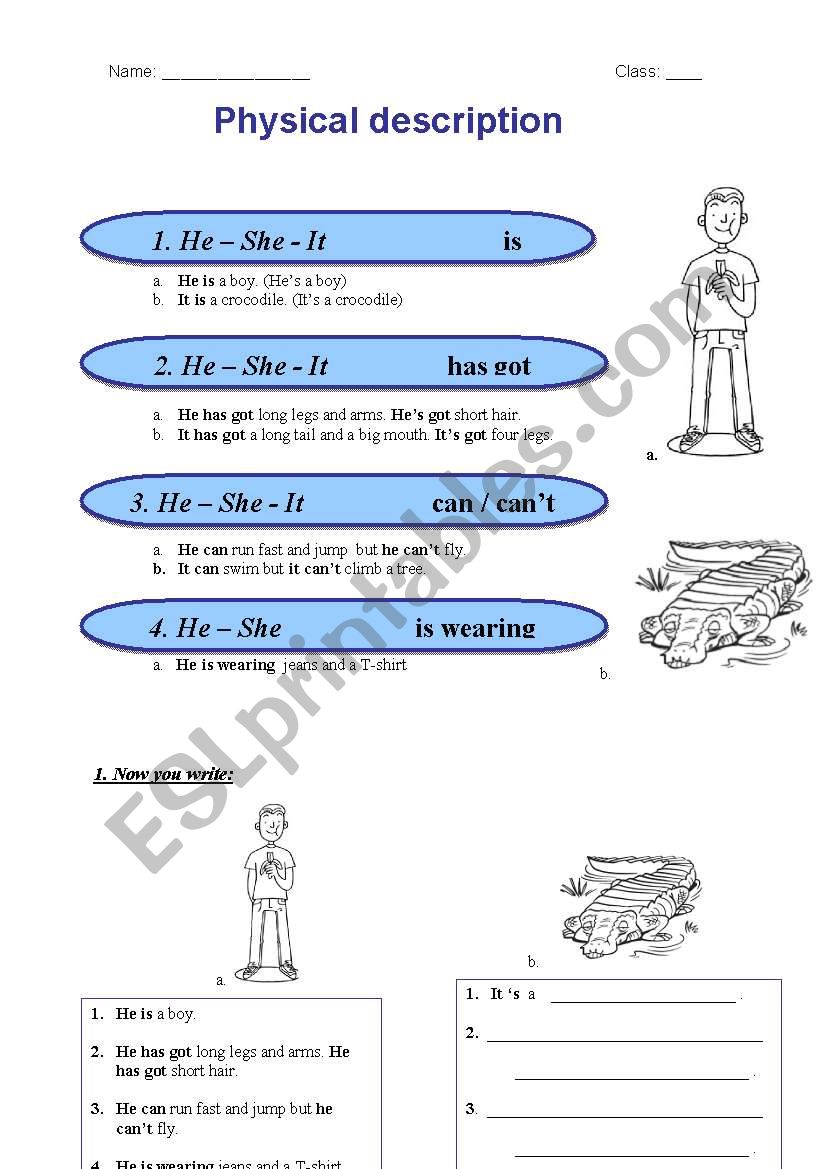 A basic guide for children to follow in order to be able to describe an animal or a person with four simple steps.