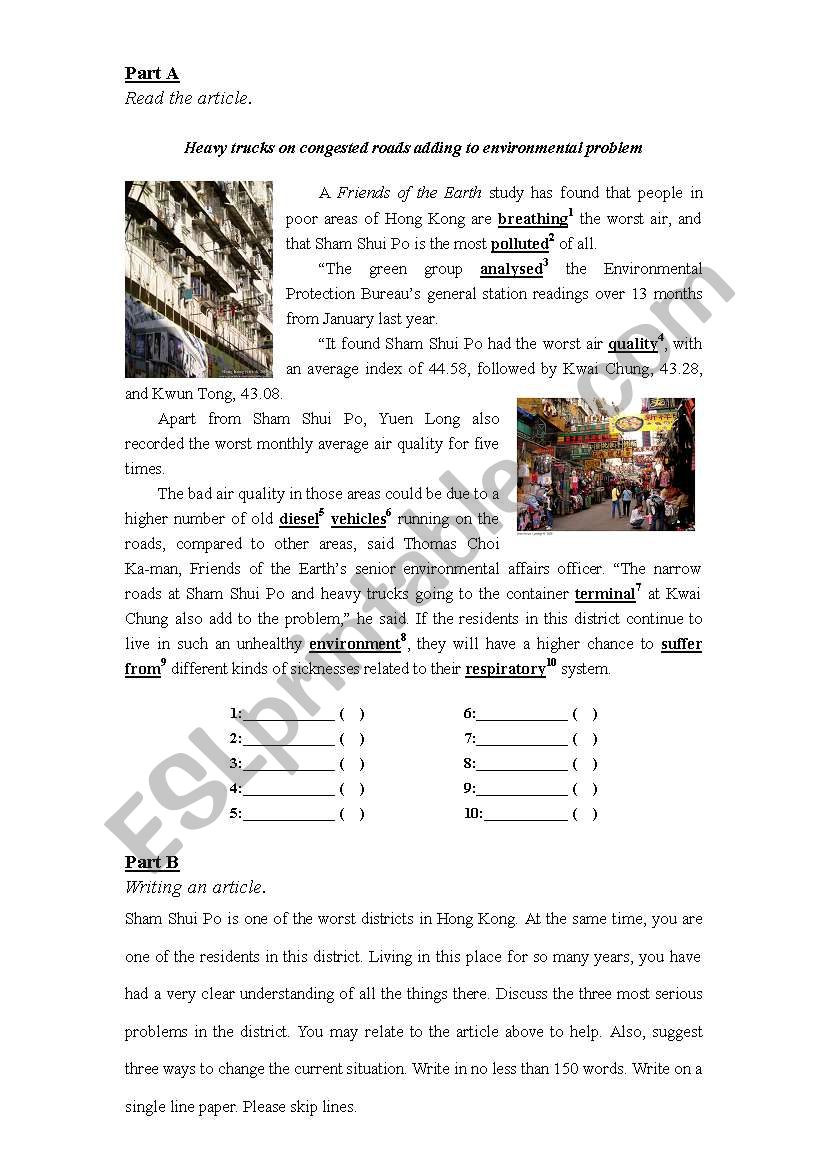 Students will be asked to write about a district that they think is the worst. They need to point out the problems of the area as well as to give suggestions.