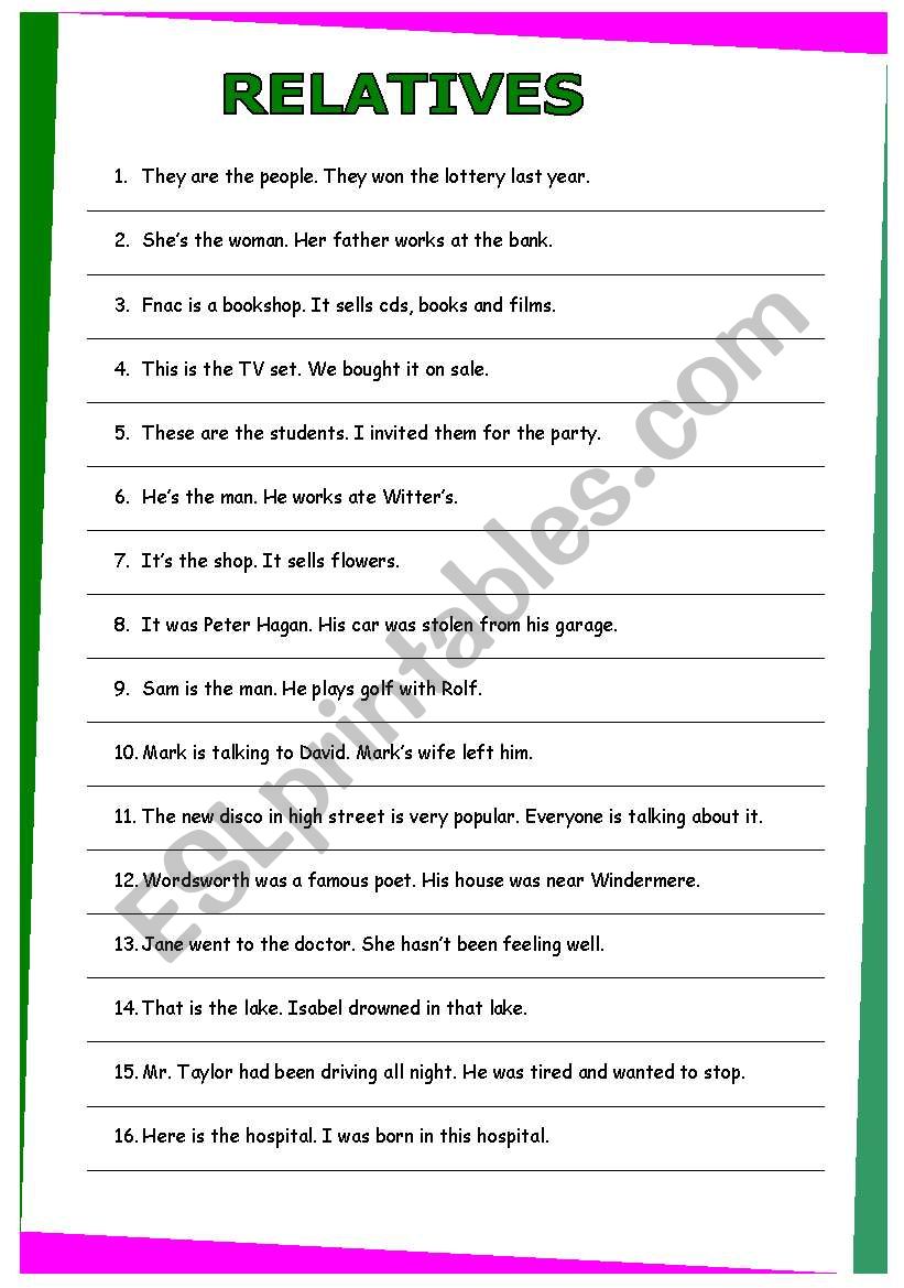 Grammar worksheets > Clauses > Relative clauses > relatives. GRAMMAR WORKSHEET 27
