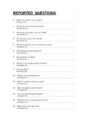 Grammar worksheets > Direct/reported speech > Reported questions > Reported Questions